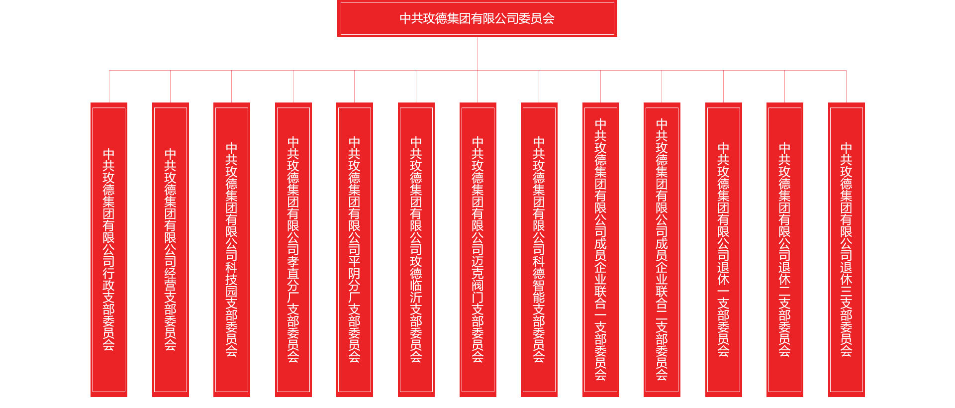 1.中共18新利体育入口行政支部委員會(hui) 2.中共18新利体育入口經營支部委員會(hui) 3.中共18新利体育入口科技園支部委員會(hui) 4.中共18新利体育入口孝直分廠支部委員會(hui) 5.中共18新利体育入口平陰分廠支部委員會(hui) 6.中共18新利体育入口玫德臨(lin) 沂支部委員會(hui) 7.中共18新利体育入口邁克閥門支部委員會(hui) 8.中共18新利体育入口科德智能支部委員會(hui) 9.中共18新利体育入口成員企業(ye) 聯合一支部委員會(hui) 10.中共18新利体育入口成員企業(ye) 聯合二支部委員會(hui) 11.中共18新利体育入口退休一支部委員會(hui) 12.中共18新利体育入口退休二支部委員會(hui) 13.中共18新利体育入口退休三支部委員會(hui)