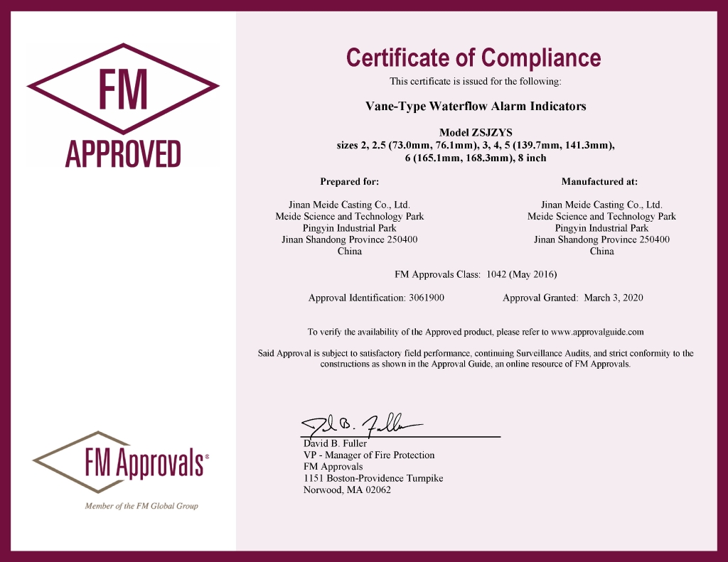 我司水流指示器ZSJZYS通過FM認證
