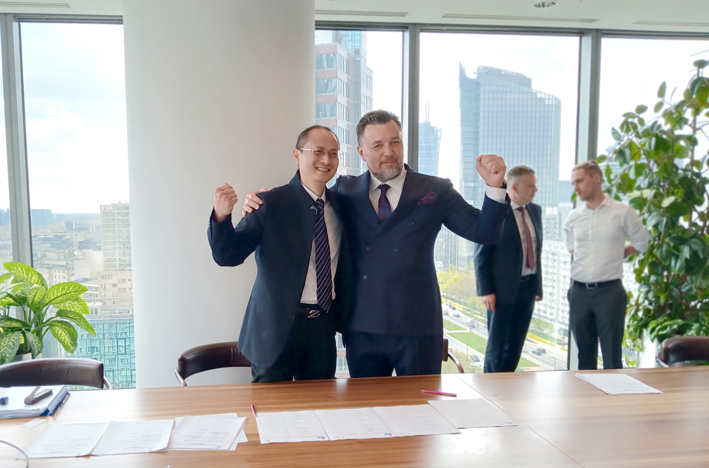 2022年4月29日,“新利娱乐体育官网並購波蘭(lan) Odlewnia Zawiercie有限公司(簡稱波蘭(lan) EE)交割簽字儀(yi) 式”在波蘭(lan) 華沙隆重舉(ju) 行,新利娱乐体育官网董事局副主席常城先生、波蘭(lan) EE公司股東(dong) Rafel Salsky先生,簽約交割,宣告波蘭(lan) EE公司正式加入新利娱乐体育官网。