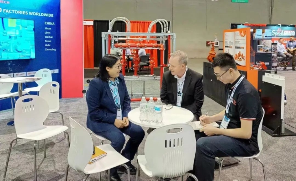 本次國際消防展不僅(jin) 體(ti) 現新利娱乐体育官网產(chan) 品齊全的優(you) 勢,還呈現出多樣化的服務理念,用以滿足客戶不同需求。分別有來自北美、南美、中東(dong) 、歐洲、以及東(dong) 南亞(ya) 的客戶來訪玫德展區,展會(hui) 共接待新客戶60多家、老客戶20餘(yu) 家,並達成多單合作意向。