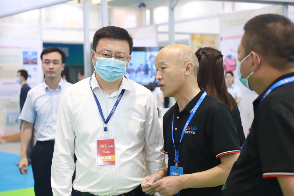 中國國際貿易促進委員會(hui) 濟南市分會(hui) 副會(hui) 長張喆蒞臨(lin) 玫德展區考察,並作出指導,玫德艾瓦茲(zi) (濟南)金屬製品有限公司總經理田玉臣進行介紹與(yu) 講解。