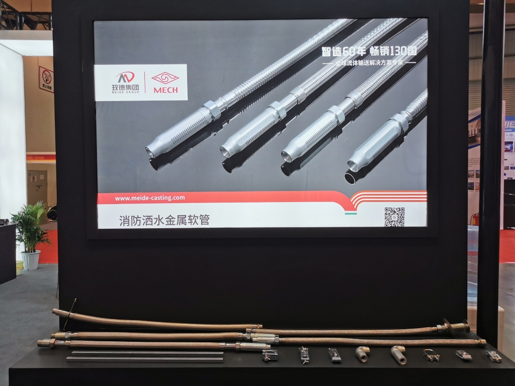 玫德展出多種消防產(chan) 品,包含瑪鋼管件、溝槽管件、鋼管、閥門、不鏽鋼管材管件、抗震支吊架、碳鋼管材管件、金屬軟管等,展會(hui) 中備受關(guan) 注。其中重點推介艾瓦茲(zi) 消防金屬軟管、消防碳鋼卡壓產(chan) 品、BIM設計、管道預製、數字化安裝等產(chan) 品與(yu) 解決(jue) 方案。