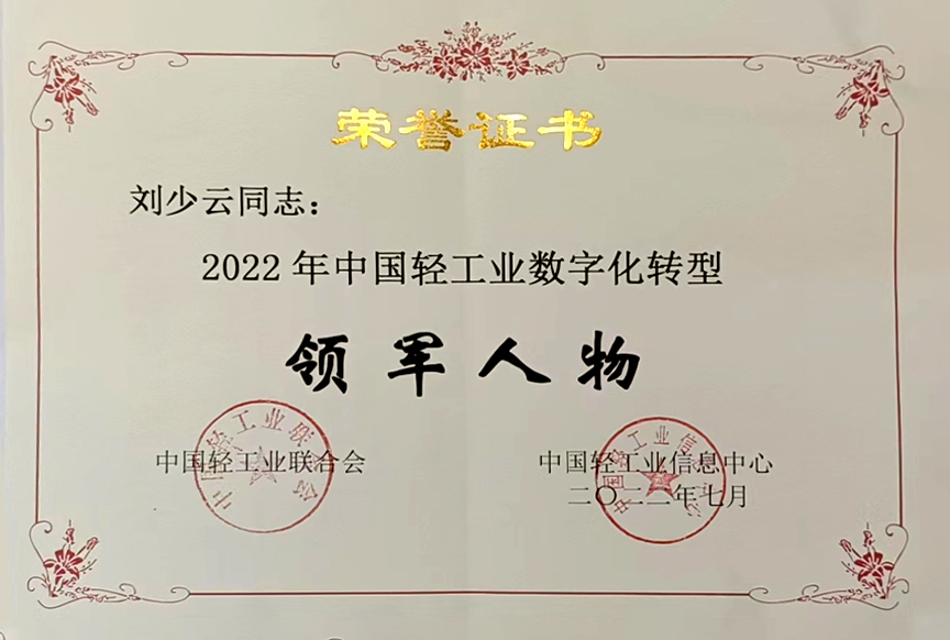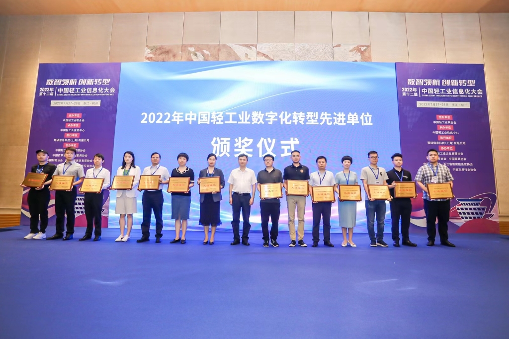 2022年7月,中國輕工業(ye) 聯合會(hui) 發布“關(guan) 於(yu) 2022年中國輕工業(ye) 數字化轉型先進單位和先進個(ge) 人評選結果”:18新利体育入口被評為(wei) “2022年中國輕工業(ye) 數字化轉型先進單位”;濟南科德智能科技有限公司總經理劉少雲(yun) 榮獲“2022年中國輕工業(ye) 數字化轉型領軍(jun) 人物”稱號。7月27日,在2022年中國輕工業(ye) 信息化大會(hui) 上,舉(ju) 辦了頒獎儀(yi) 式。