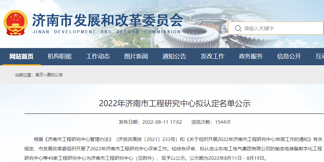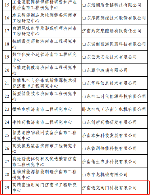 近日,濟南市發展和改革委員會(hui) 進行了2022年濟南市工程研究中心擬認定名單的公示,濟南邁克閥門科技有限公司認定為(wei) “高精密通用閥門濟南市工程研究中心”。