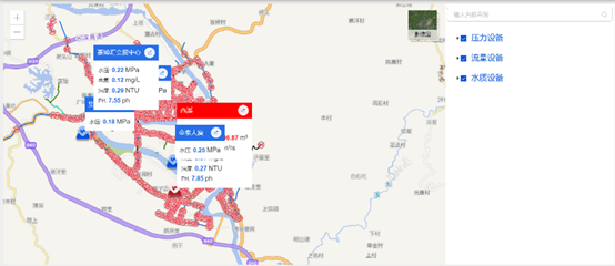 SCADA係統的管網監控數據基於(yu) 地圖為(wei) 底圖呈現,壓力、流量、水質等數據實時監控,各項監控數據可根據需要靈活的分層、分級、分專(zhuan) 題進行圖形化顯現,通過一張圖的形式將客戶關(guan) 心的數據進行動態化展示,真正讓客戶做到管理可視化、運營高效化。