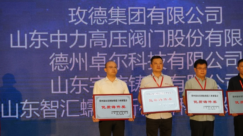 山東(dong) 鑄造協會(hui) 組織專(zhuan) 家學者到科德展位,對新利娱乐体育官网提報:250規格爬架導座;科德智能提報:配重鐵產(chan) 品智能儲(chu) 存立庫,分別進行“優(you) 秀鑄件獎”、“優(you) 秀鑄造裝備獎”評選,最終兩(liang) 個(ge) 參賽展品雙雙獲獎。