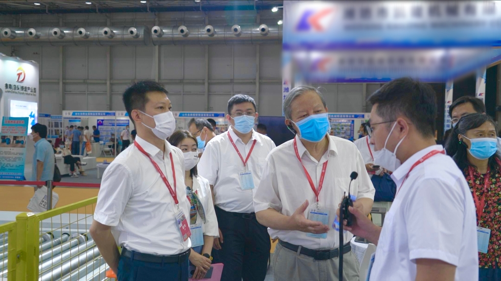 直播期間,山東(dong) 省鑄造協會(hui) 秘書(shu) 長張江陪同中國機械工業(ye) 聯合會(hui) 執行副會(hui) 長張克林等一行領導蒞臨(lin) 科德智能展位進行觀摩指導。