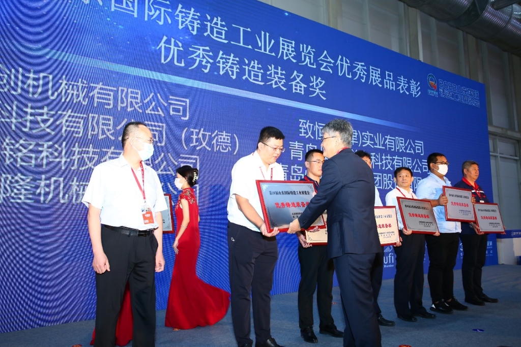 科德智能參評“配重鐵產(chan) 品智能儲(chu) 存立庫”展品,經專(zhuan) 家評審組評定榮獲“優(you) 秀鑄造裝備獎”,科德智能銷售部趙承肖代表公司上台領獎。