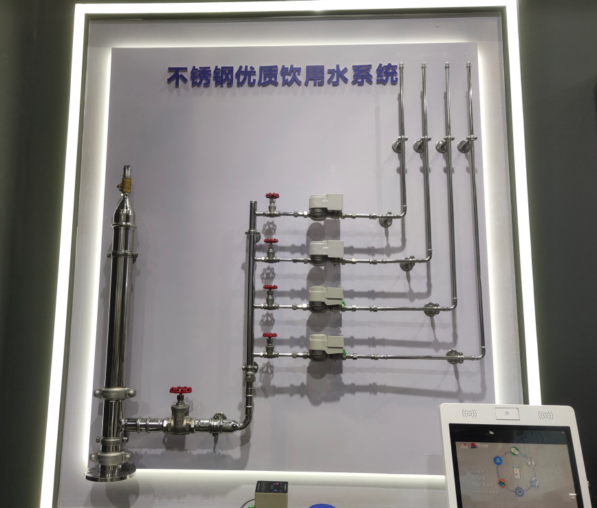 直飲水管路係統整體(ti) 采用不鏽鋼材質的管材、管件、閥門、水箱等配件設施。所謂直飲水,就是水嘴接出來的自來水可以直接飲用。目前不鏽鋼薄壁管材管件,在小區二次供水改造過程中應用得越來越多,比如深圳、武漢、中南、鄭州、廣州、中山、合肥、昆山等水務公司。