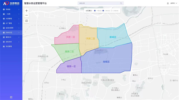 城市管網分區管理,實時監測各分區數據,重點管控高漏損區,降低供水損失。