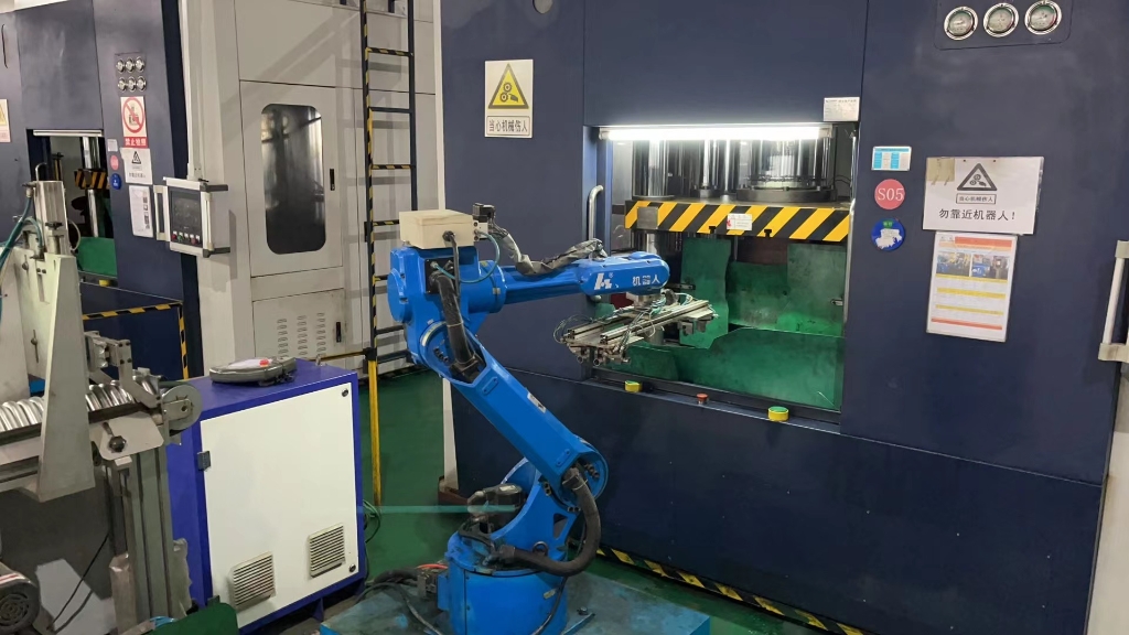 ④成型:采用機器人自動上料、水脹、下料一體(ti) 。