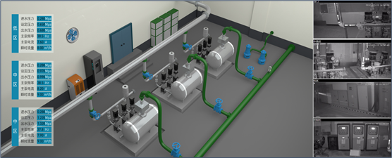 二供管理平台集成泵房工藝圖、供水實時數據、門禁狀態和視頻監控,全方位掌控泵房現場情況,實現泵房防入侵和自調解。