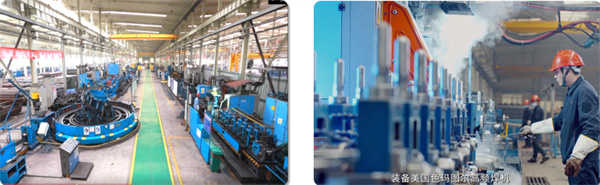此生產(chan) 線將焊管、平頭和水壓工序連成一條線,實現一個(ge) 流生產(chan) ,確保每支鋼管全部經過打壓才能下線。