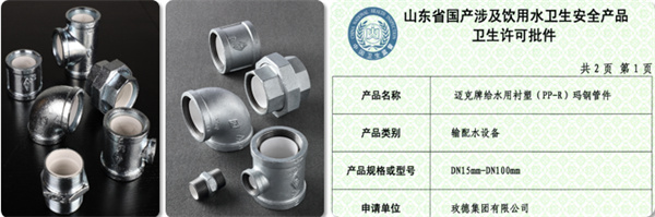 C:內(nei) 襯用料足:符合 GB/T 28897《流體(ti) 輸送用鋼塑複合管及管件》,CJ/T 137 《給水襯塑可鍛鑄鐵管件》標準;