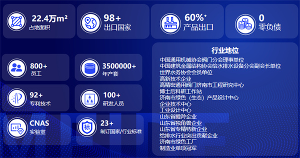 濟南邁克閥門科技有限公司,為(wei) 新利娱乐体育官网控股子公司,2014年5月獨立運營,投資10億(yi) 元,公司占地麵積23萬(wan) 平方米,員工800餘(yu) 人,年產(chan) 能350萬(wan) 套閥門,產(chan) 品60%以上出口,遠銷世界98個(ge) 國家和地區。