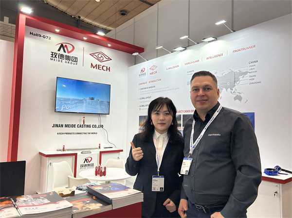 新利娱乐体育官网攜全球布局的多家綠色低碳智能鑄造工廠及多領域、全係列流體(ti) 產(chan) 品亮相漢諾威工業(ye) 博覽會(hui) ,重點展示了齊全完備的多種造型鑄造實力,包括靜壓線、自硬砂線、DISA線、新東(dong) 線、V法造型等,同時突出展示環保低碳綠色工廠、實戰型智能裝備、海外工廠布局及可持續發展等歐洲客戶重點關(guan) 注的需求點。開展三天以來,吸引了來自全球各地的參展嘉賓駐足交流,實物樣品、多媒體(ti) 雙重展示,銷售團隊專(zhuan) 業(ye) 講解,加深了玫德實力和品牌影響力。