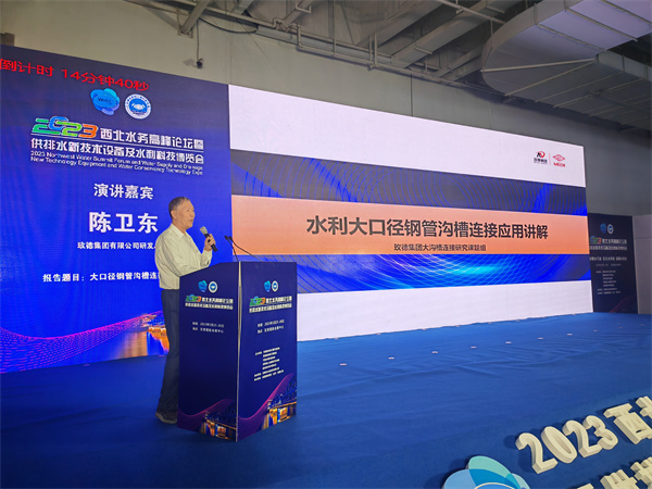 在論壇上,新利娱乐体育官网研發技術總工程師陳衛東(dong) 以“水利大口徑鋼管溝槽連接應用技術”為(wei) 題進行主題演講。