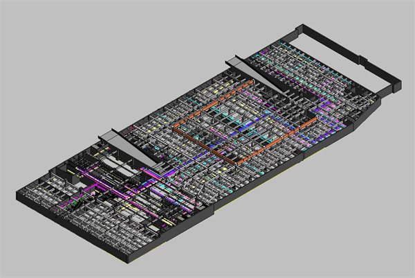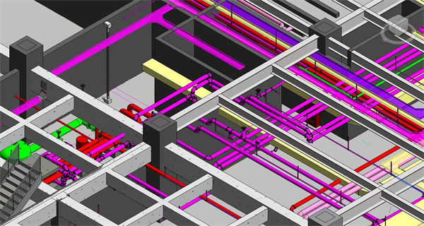 在BIM深化設計階段,通過BIM建模技術應用於(yu) 構建三維模型,設計人員在圖紙中進行管道係統的優(you) 化和調整,對碰撞點位進行檢查,並出具解決(jue) 方案,並且減少了出現錯誤的可能性。