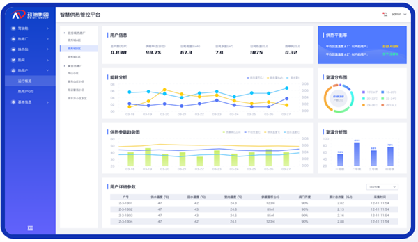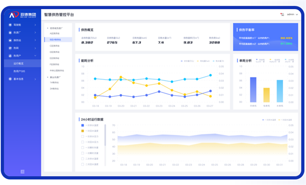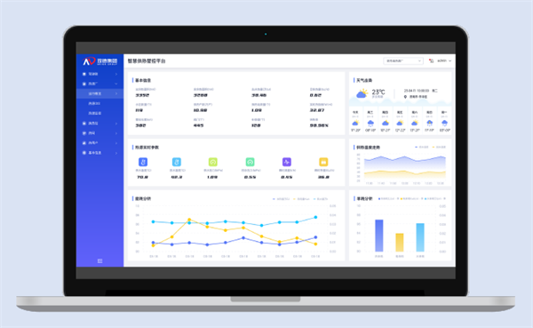 智慧供熱管控平台針對現有換熱站及熱源係統,具備供熱概覽、全麵監控、氣象參數、能耗分析、單耗分析、室溫采集、室溫平衡、室溫達標統計等模塊。