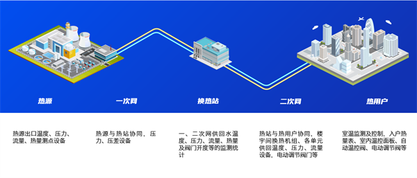 智慧供熱是以供熱信息化和產(chan) 品自動化為(wei) 基礎,以信息係統與(yu) 物理係統深度融合為(wei) 技術路徑,運用物聯網、空間定位、雲(yun) 計算等“互聯網+”技術,感知連接供熱係統“源-網-站-戶”全過程中的各種要素,按需精準調控係統中各層級、各環節對象的一體(ti) 化解決(jue) 方案。