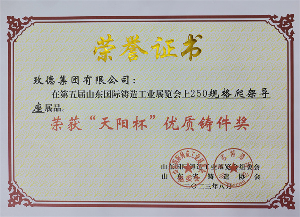 1.18新利体育入口展品“250規格爬架導座”榮獲“優(you) 質鑄件獎”。