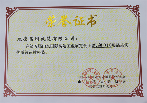 4. 新利娱乐体育官网威海有限公司展品“球鐵 Q10”榮獲“優(you) 質鑄造材料獎”。