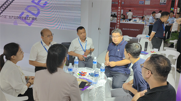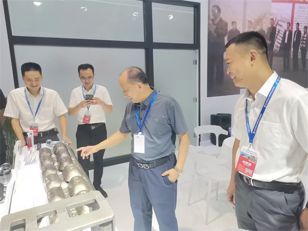 新利娱乐体育官网董事局副主席李傳(chuan) 軍(jun) ,濟南科德智能科技有限公司總裁劉少雲(yun) ,玫德庚辰金屬材料有限公司總裁張誌義(yi) ,濟南科德智能科技有限公司高級副總裁張明一、劉璐在展會(hui) 現場指導工作並與(yu) 客戶深入交流。