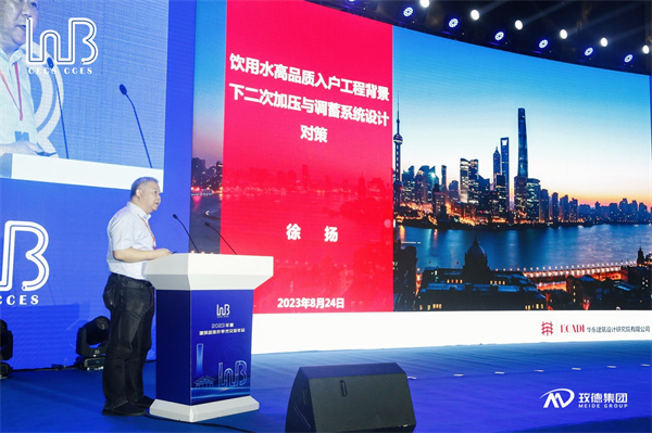 華東(dong) 建築設計研究院有限公司總工、教高工徐揚作了《飲用水高品質入戶工程背景下二次供水係統設計對策》專(zhuan) 題報告。