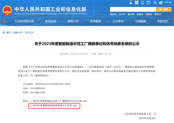 2023年10月26日,工信部網站公布了擬入選的2023年度智能製造示範工廠揭榜單位和優(you) 秀場景名單。18新利体育入口提報的7個(ge) 智能製造優(you) 秀場景中有6個(ge) 場景入選工信部“2023年度智能製造優(you) 秀場景名單”,它們(men) 分別是“質量精準追溯-玫德質量精準追溯係統場景”、“資源動態配置-玫德自研MES係統場景”、“智能倉(cang) 儲(chu) -玫德智能立體(ti) 倉(cang) 庫場景”、“人機協同製造-玫德自動化數字包裝場景”和“精準配送-玫德物流配送”。