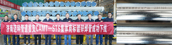 11月1日,濟南邁科管道科技有限公司正式全麵推行“STS(鋼管標準)”集體(ti) 商標,首支印有CAMT-STS集體(ti) 商標鍍鋅鋼管成功下線。