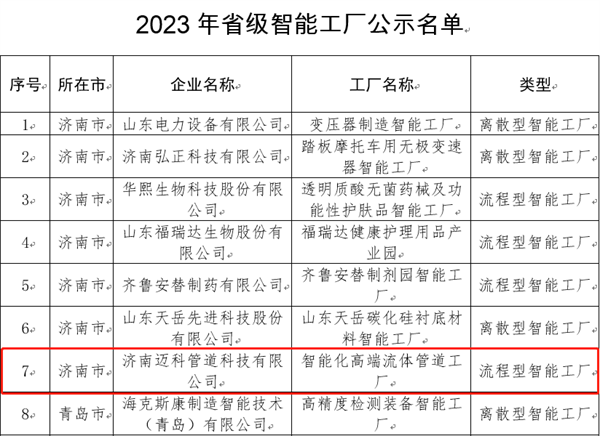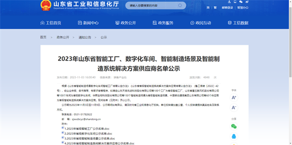 2023年11月3日山東(dong) 省工業(ye) 和信息化廳公示了《2023年山東(dong) 省智能工廠、數字化車間、智能製造場景及智能製造係統解決(jue) 方案供應商名單》。