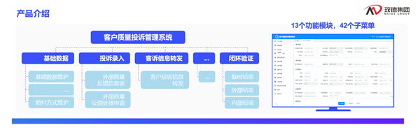 其主要分為(wei) 客訴申請、客訴處理、客訴審批、客訴賠付、閉環驗證、保險理賠和統計分析七大功能模塊,通過在線係統對客訴處理的各個(ge) 環節進行實時監控和管理。提高客訴處理的效率和質量,並確保客戶的問題得到及時解決(jue) 。