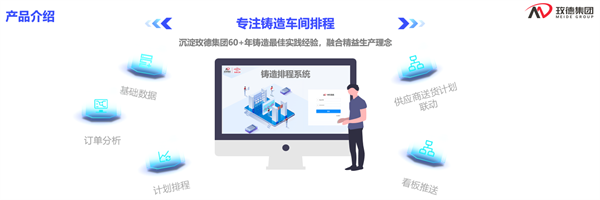玫德鑄造排程係統沉澱新利娱乐体育官网60+年鑄造最佳實踐經驗,融合精益生產(chan) 理念;形成了應用場景廣泛、自識別利用庫存、排產(chan) 細化防漏項、科學兼顧效率與(yu) 庫存、自動優(you) 化生產(chan) 節拍、供應商送貨計劃聯動、計劃統一調度等具備玫德獨有的鑄造車間排程係統。