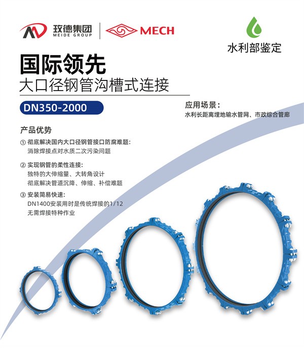 大口徑鋼管溝槽連接技術徹底解決(jue) 國內(nei) 大口徑鋼管接口防腐難題,消除焊接點對水質二次汙染問題,實現管道的柔性連接,每一個(ge) 連接處都是一個(ge) 活接頭,獨特的大伸縮量、大轉角設計徹底解決(jue) 管道沉降、伸縮、補償(chang) 難題;解決(jue) 了焊接帶來的安全隱患問題,作為(wei) 完全機械式采用螺栓連接的係統,無焊接作業(ye) 可能導致的火災危險,並且可適用於(yu) 狹窄空間作業(ye) ;安裝簡易迅速滿足項目時限要求,現場展示的DN1400口徑溝槽安裝是傳(chuan) 統焊接用時的1/12,且僅(jin) 需普通工人,拆裝工具僅(jin) 用一把扳手加螺栓即可,明顯縮短管道工程的構建和維護工期。