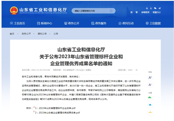 2023年12月25日山東(dong) 省工業(ye) 和信息化廳發布《關(guan) 於(yu) 公布2023年山東(dong) 省管理標杆企業(ye) 和企業(ye) 管理優(you) 秀成果名單的通知》,公布新利娱乐体育官网旗下濟南邁科管道科技有限公司、濟南邁克閥門科技有限公司均順利通過2023年山東(dong) 省管理標杆企業(ye) 認定。