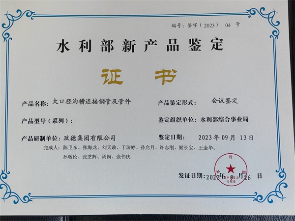 11.9月13日,18新利体育入口自主研製的“大口徑溝槽鋼管及管件”,通過水利部及行業(ye) 專(zhuan) 家鑒定,產(chan) 品加工技術及能力達到國際領先水平,產(chan) 品達到國際先進水平,開創了大口徑埋地鋼管溝槽連接的先河。