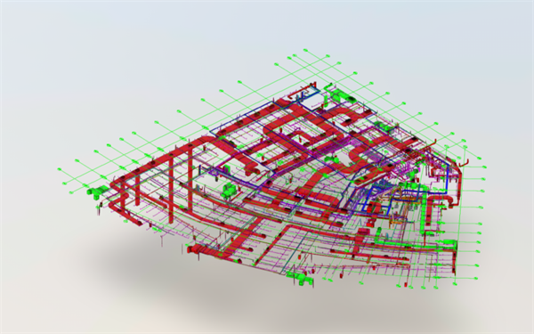 模型是開展其它BIM技術應用的前提和基礎,是工程建設數據信息流的傳(chuan) 遞載體(ti) ,同時在項目竣工之後也會(hui) 成為(wei) 建設單位或使用單位的一份數字資產(chan) 。本項目所建模型包括建築、結構、給排水、暖通、電氣等專(zhuan) 業(ye) 。