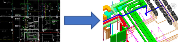 二維設計重點在平麵圖紙中表達設計意圖和信息,BIM設計則重點在利用數值化模型中幾何信息和非幾何信息直觀的看到係統的排布組成。