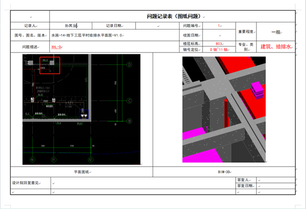 BIM設計人員在建模的過程中,通常會(hui) 將在圖紙上發現各種各樣的問題,記錄下來並會(hui) 同設計單位解決(jue) ,形成一圖紙問題報告。本項目發現問題(含後麵所述的碰撞等),經各相關(guan) 單位共同協商已全部解決(jue) 。這是BIM技術應用在提升設計質量落地實施、價(jia) 值集中體(ti) 現的關(guan) 鍵點,同時也是業(ye) 主們(men) 所關(guan) 注的內(nei) 容之一。