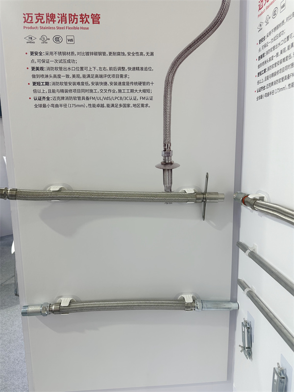 消防軟管安裝以其安全耐久、追位精準、便於(yu) 二裝、安裝快捷、可交叉作業(ye) 、靜音施工、降低用工成本、具備抗震性等八大先進優(you) 勢,成為(wei) 未來自動噴淋滅火係統末端安裝的新方案。