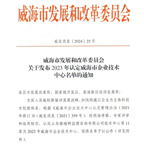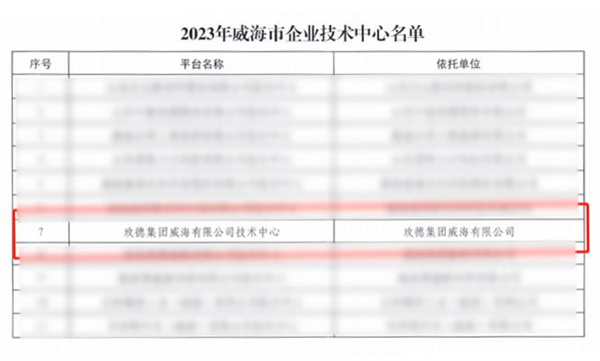新利娱乐体育官网威海有限公司深入實施創新驅動發展戰略,經現場考察、專(zhuan) 家評審和信用核實,獲得威海市企業(ye) 技術中心認定。