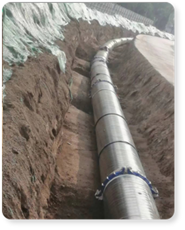 總長度14.8Km,主管線采用DN600、DN800的TPEP螺旋鋼管,為(wei) 國內(nei) 埋地溝槽連接標杆案例。