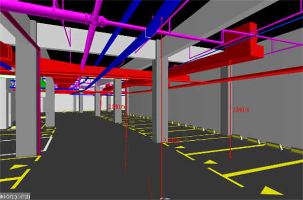 利用BIM模型,提前檢查各區域的淨空高度,進行確認,對不符合規範及有特殊要求的區域進行調整,減少後期安裝過程中的拆改,降低工程成本,滿足客戶的使用要求。