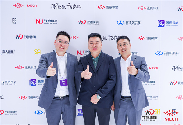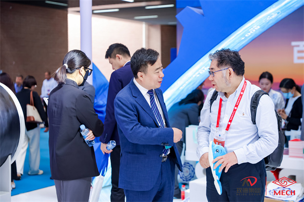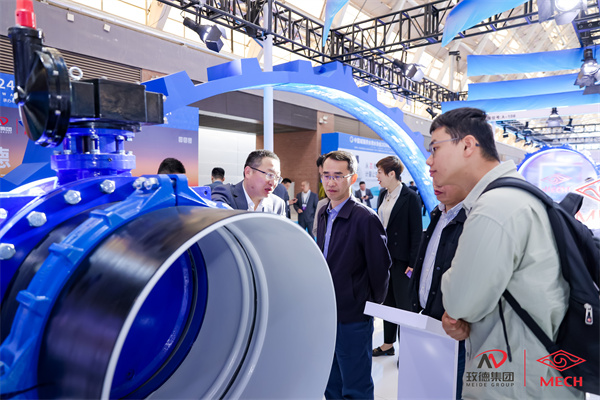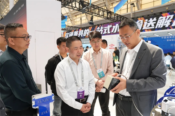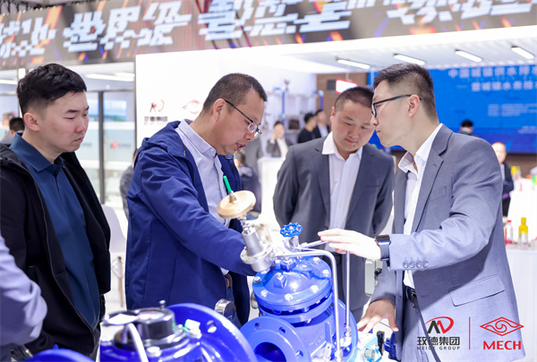 山東(dong) 省城鎮供排水協會(hui) 會(hui) 長鄧傑(左一)蒞臨(lin) 玫德展位