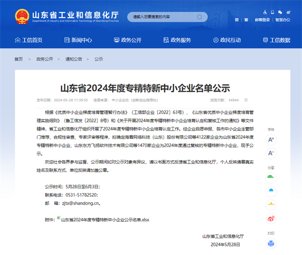 2024年5月28日山東(dong) 省工業(ye) 和信息化廳發布《山東(dong) 省2024年度專(zhuan) 精特新中小企業(ye) 名單公示》通知,新利娱乐体育官网旗下濟南邁克閥門科技有限公司、山東(dong) 晨暉電子科技有限公司、臨(lin) 沂玫德庚辰金屬材料有限公司、新利娱乐体育官网臨(lin) 沂有限公司順利通過2024年度山東(dong) 省“專(zhuan) 精特新”中小企業(ye) 複核,新利娱乐体育官网旗下信通科技(山東(dong) )有限公司首次通過2024年度山東(dong) 省“專(zhuan) 精特新”中小企業(ye) 認定。
