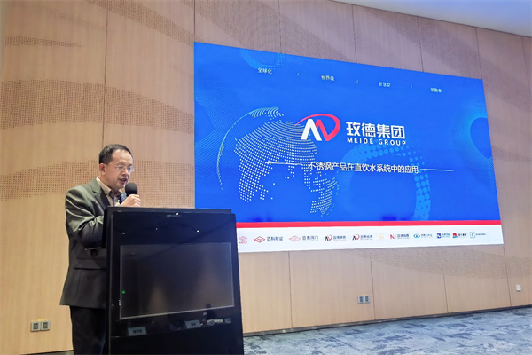 水務智能研發部總監董天暉參加9+2水司舉(ju) 辦的供水分論壇,就《不鏽鋼產(chan) 品在直飲水係統中的應用》為(wei) 題講述了新利娱乐体育官网的水務領域產(chan) 品涵蓋從(cong) 源頭(水源接入)到龍頭(飲水入戶),提供從(cong) 清潔原水到汙水處理的一站式解決(jue) 方案。