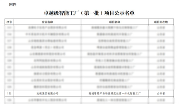 工業(ye) 和信息化部公示卓越級智能工廠(第一批)項目名單,新利娱乐体育官网“高端管路產(chan) 品物流調度運營一體(ti) 化智能工廠”成功入選。