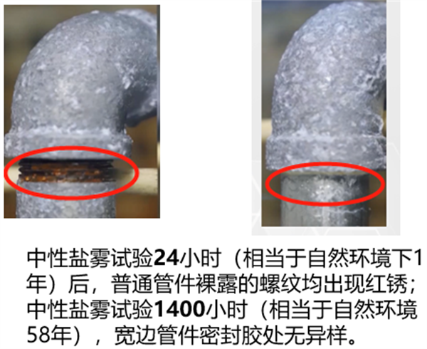 在嚴(yan) 格的中性鹽霧試驗中,玫德寬邊瑪鋼燃氣管件表現驚人,曆經 1400 小時依然無鏽蝕跡象。而普通瑪鋼管件在同樣試驗條件下,短短 24 小時便出現紅鏽,二者防腐性能高下立判。這一卓越成績充分證明了玫德管件強大的抗腐蝕能力,即使在惡劣環境中,也能長期保持良好性能,大大延長了使用壽命。