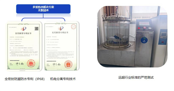 3.加強型IP68級防水:電路板多重密封技術、機電分離專(zhuan) 利技術,產(chan) 品輕量化,但原核心功能及技術亮點,不打折扣!