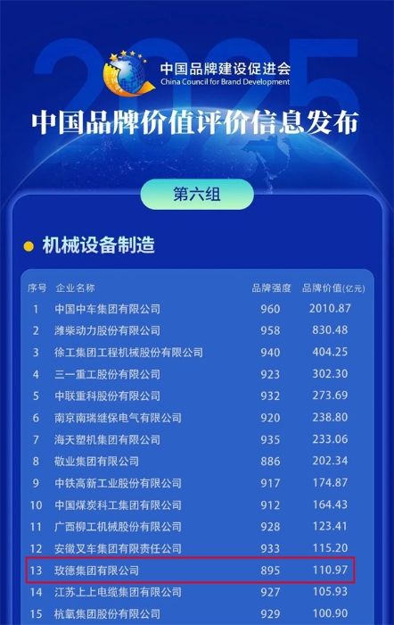 新利娱乐体育官网憑借卓越的品牌實力和行業(ye) 影響力,以110.97億(yi) 元的品牌價(jia) 值登榜“機械設備製造組”榮譽榜,較2024年的102.04億(yi) 元增長8.93億(yi) 元,彰顯了集團持續創新的發展韌性和品牌價(jia) 值的強勁攀升。